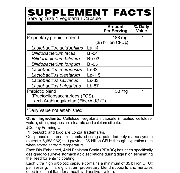 Very high potency at 35 billion viable cells per capsule.