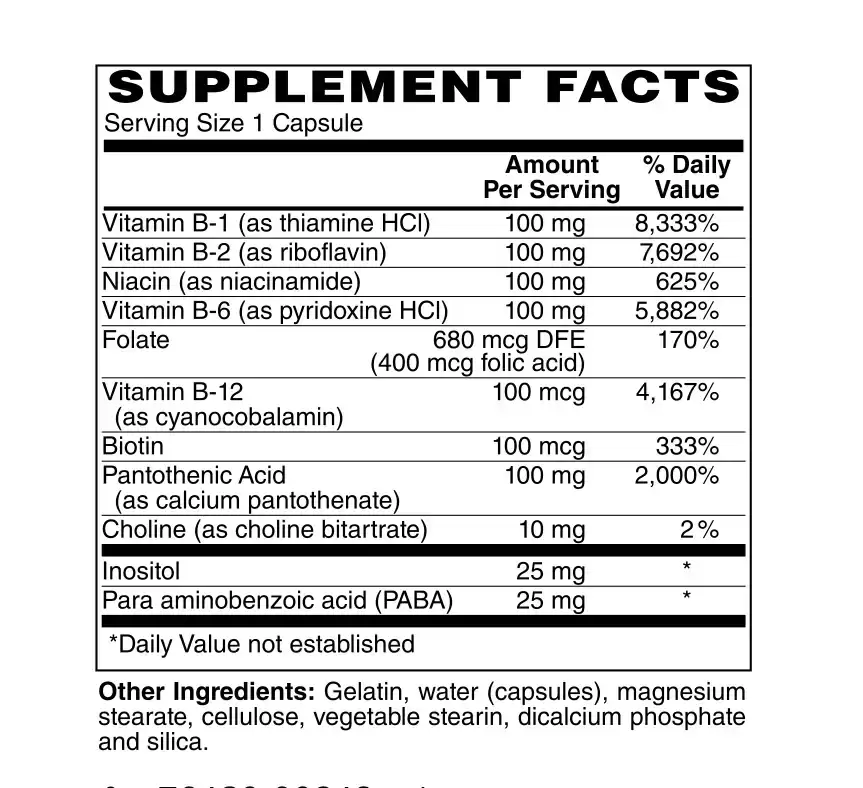 B-Complex 100 provides a high-potency, full-spectrum B-vitamin supplement which helps support many different biochemical and physiological processes.†