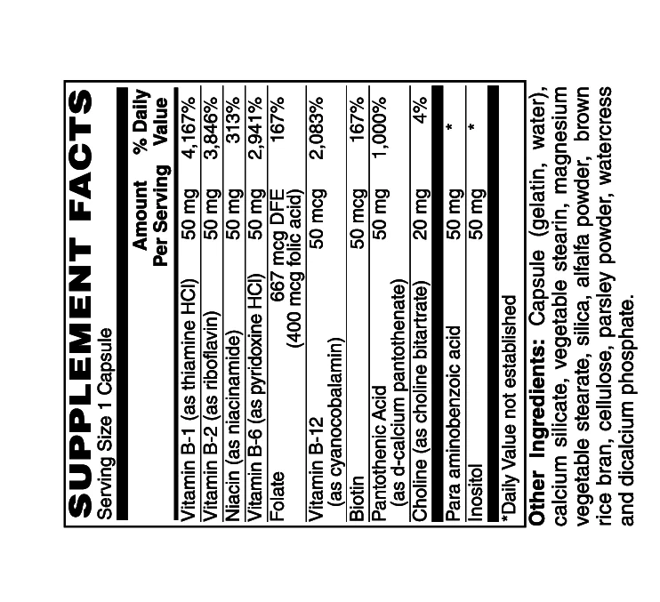 B-Complex 50 provides a moderate-potency, full-spectrum B-vitamin supplement which helps support many different biochemical and physiological processes.†