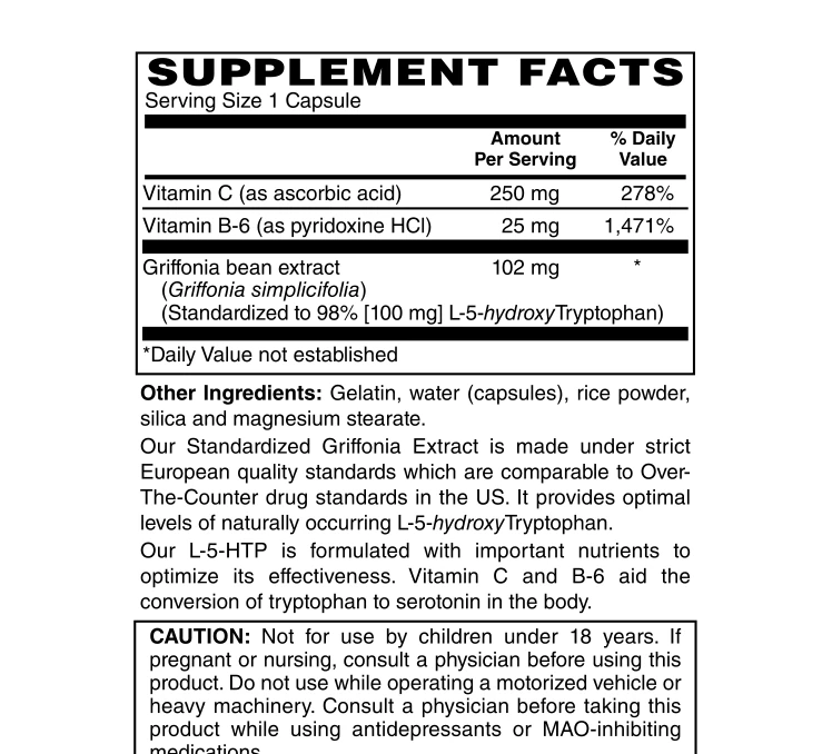 Sourced from European standardized Griffonia bean extract.