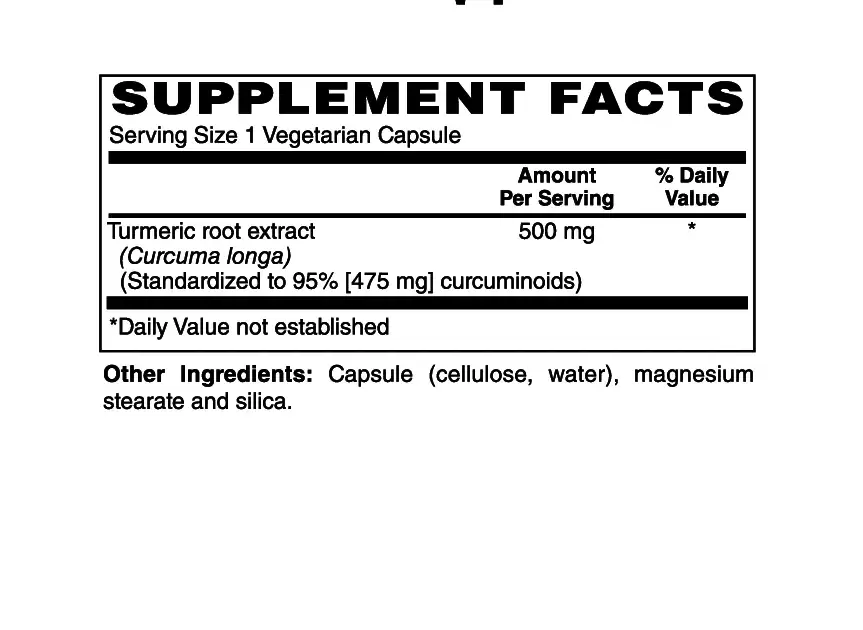 The raw material is standardized to 95% curcuminoids (475 mg), per capsul.